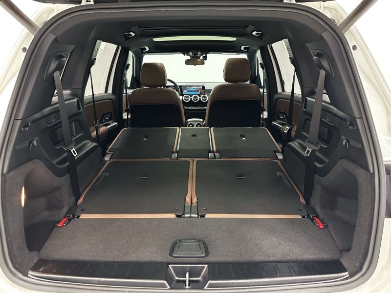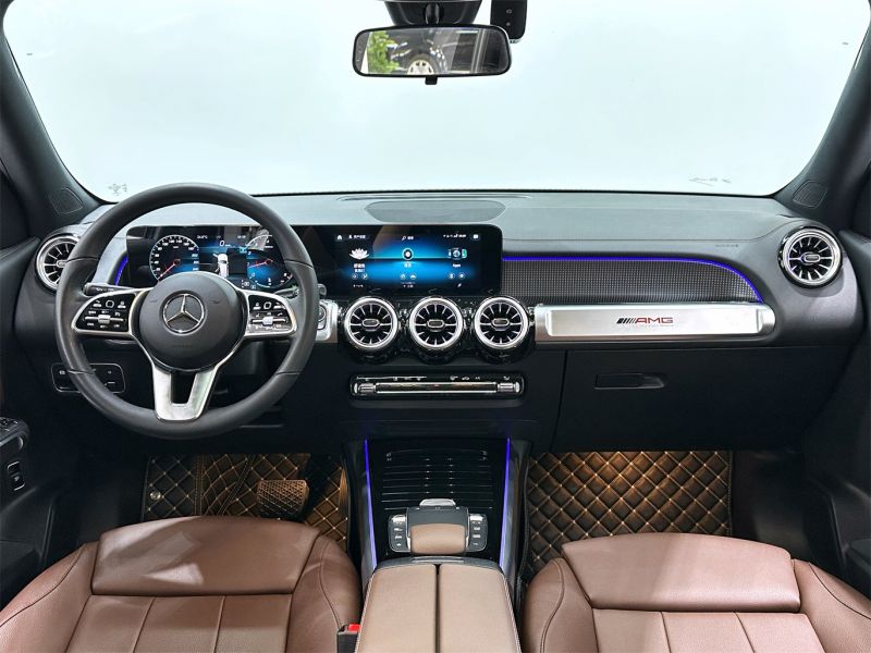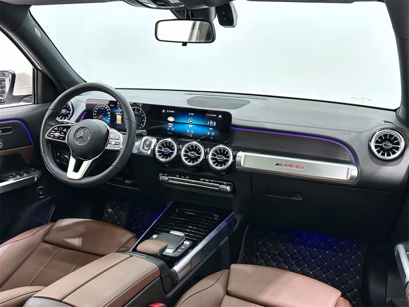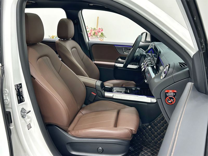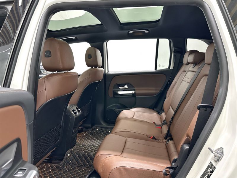 白色奔驰GLB 2021款GLB200时尚型,国六排放标准,外观漆面光洁如新,搭配时尚运动轮毂。内饰采用黑色皮质座椅,配备双10.25英寸大屏、全景天窗及64色氛围灯,兼顾家用与商务需求。